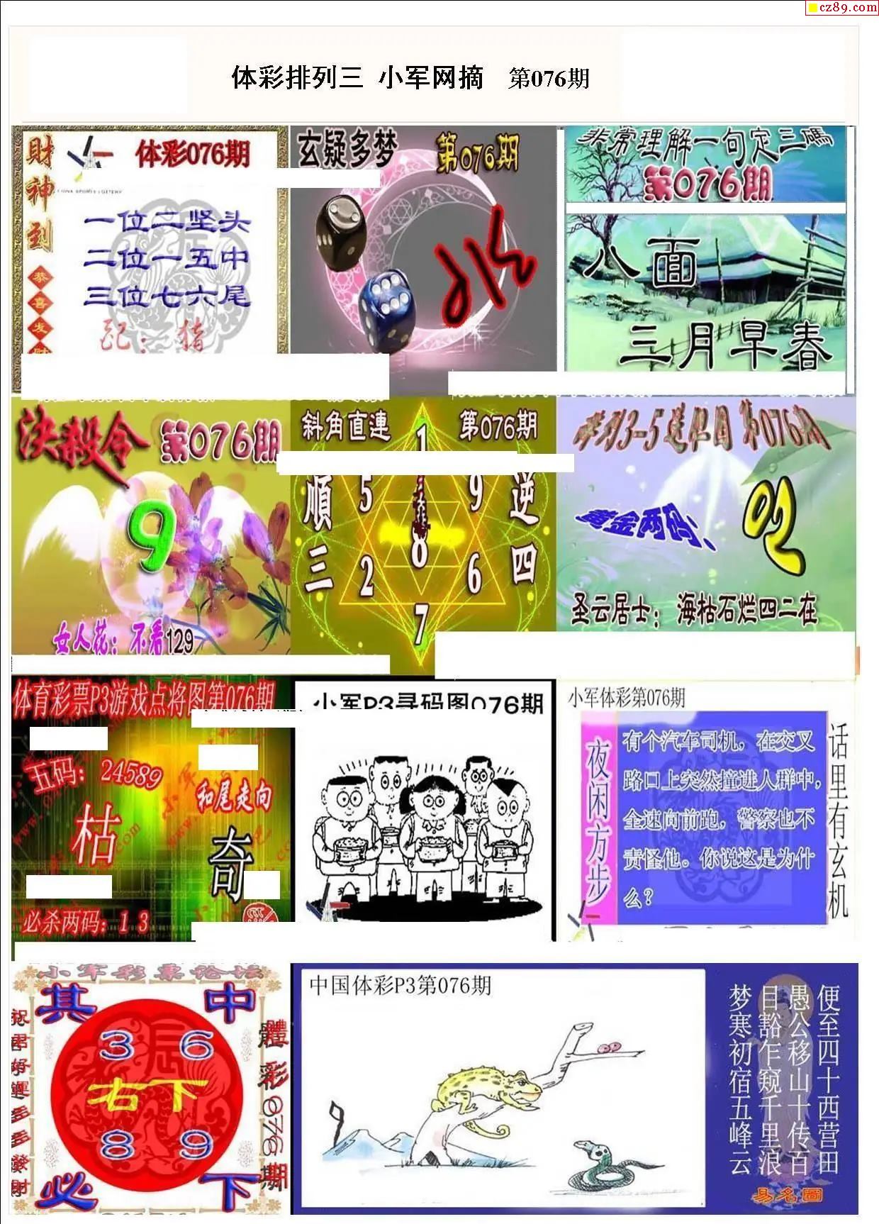 2026年076期牛彩网体彩P3画迷图谜汇总分享
