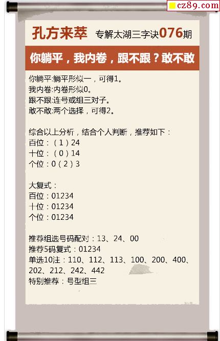 心遂分析太湖26年076期之 敢不敢
