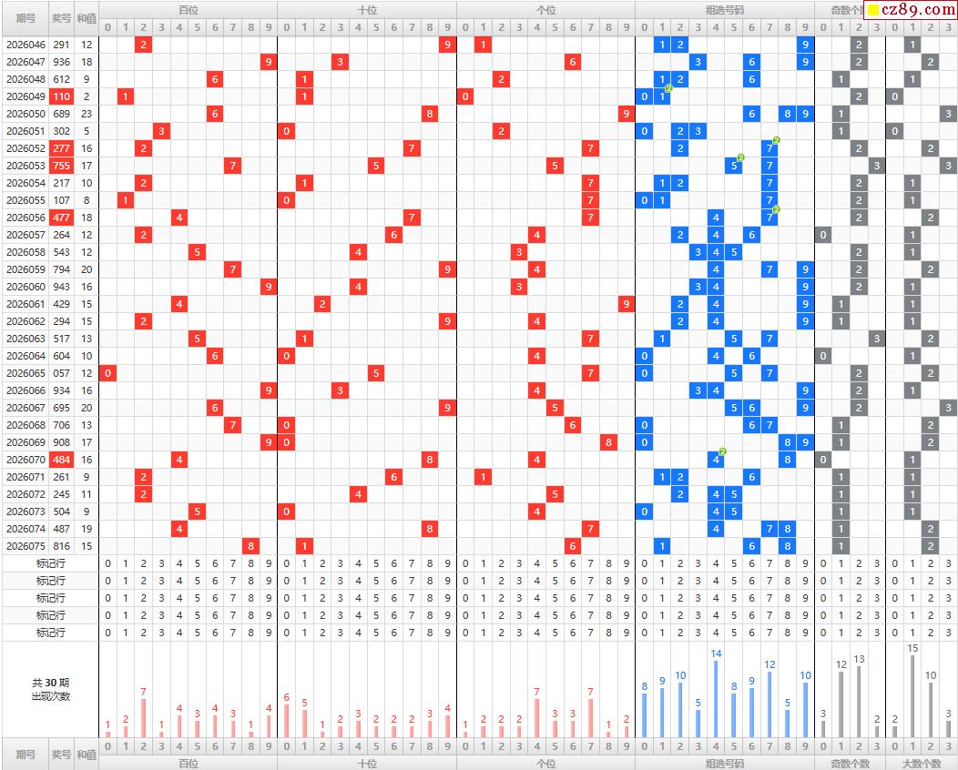 26年076期彩宝贝专家福彩3D杀号定码图表