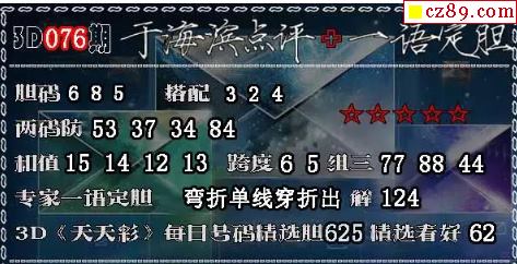 3D预测: 3D胆码预测 3D杀码预测 标签:于海滨点评 于海滨一语定胆 胆码 6 8 5 搭配 3 2 4 两码防 53 37 34 84 和值15 14 12 13跨度6 5组三77 88 44 专家一语定胆 弯折单线穿折出 解124 3D 《天天彩》每日号码精选胆625 精选看好62 发布时间:2026-03-26 21:59