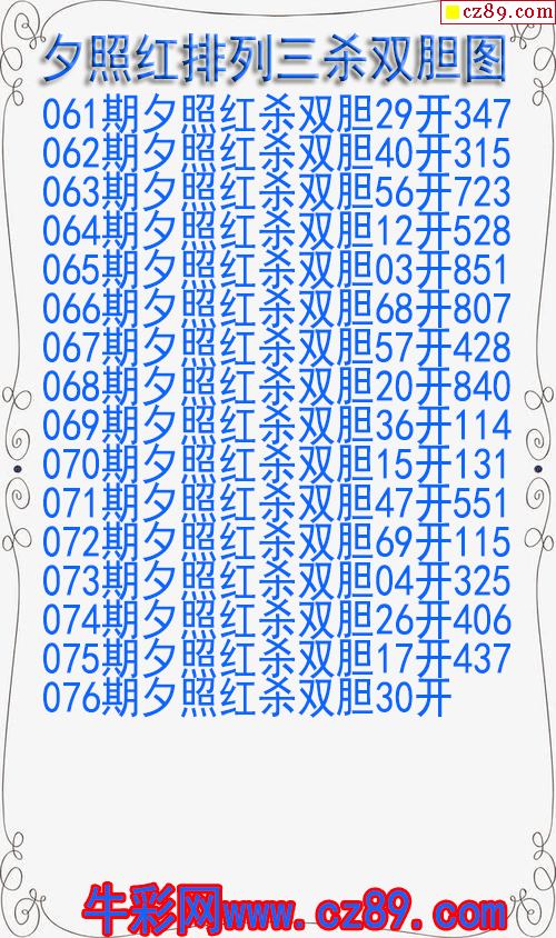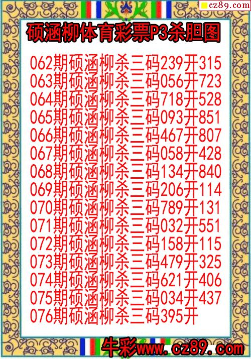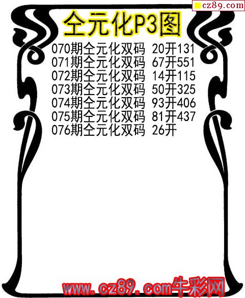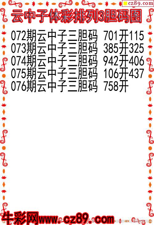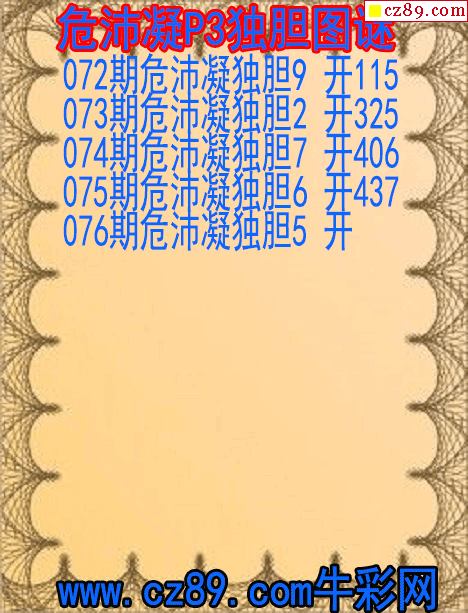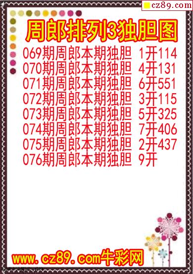 2026年076期牛彩网体彩P3画迷图谜汇总分享