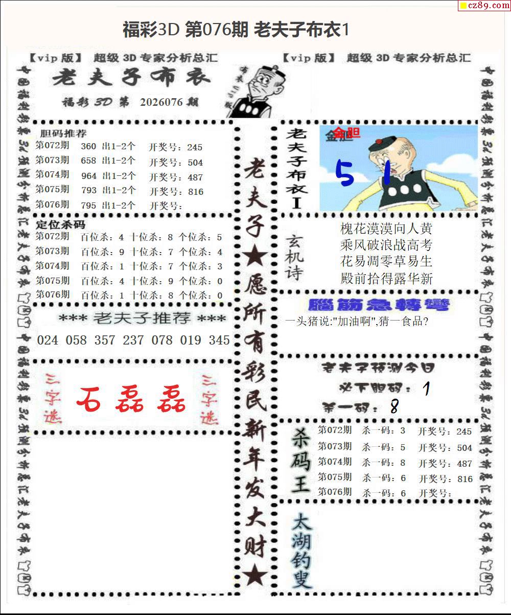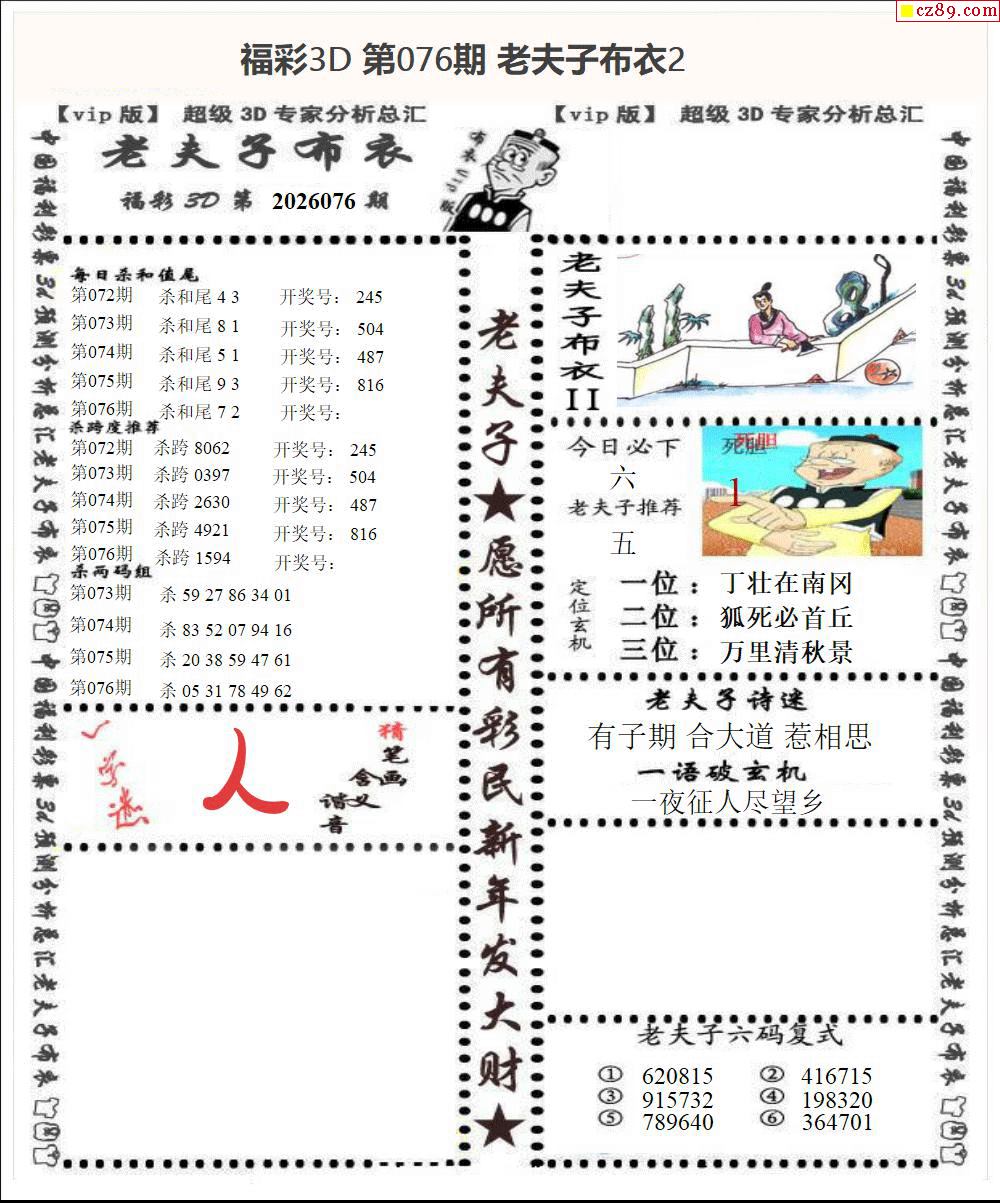 老夫子布衣2026076期3d图谜