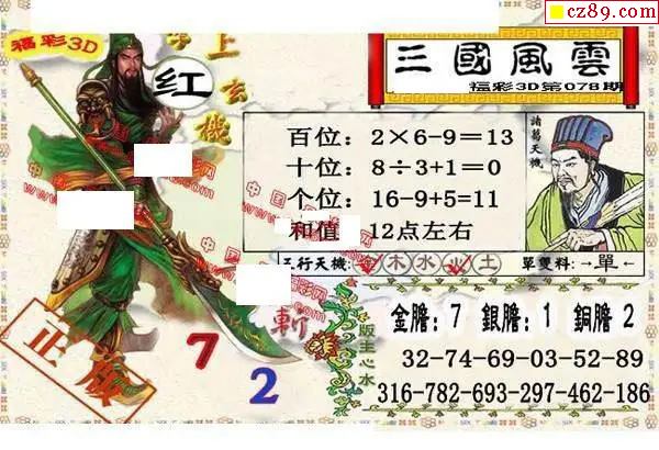 五福财星三胆2026078期3d图谜(原创)