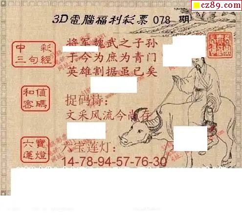 2026078期牛彩一句定三码
