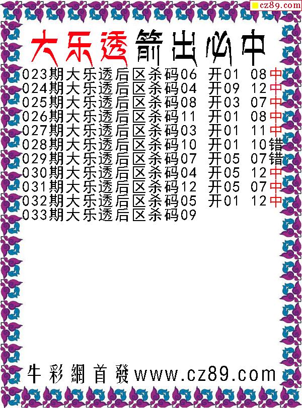 大乐透033期牛彩特邀专家前区后区杀号定胆图表