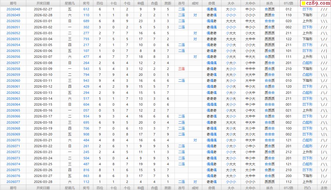 26年078期福彩3D综合统计表