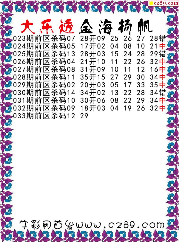 大乐透2026033期金海扬帆前区杀号图谜 10中7