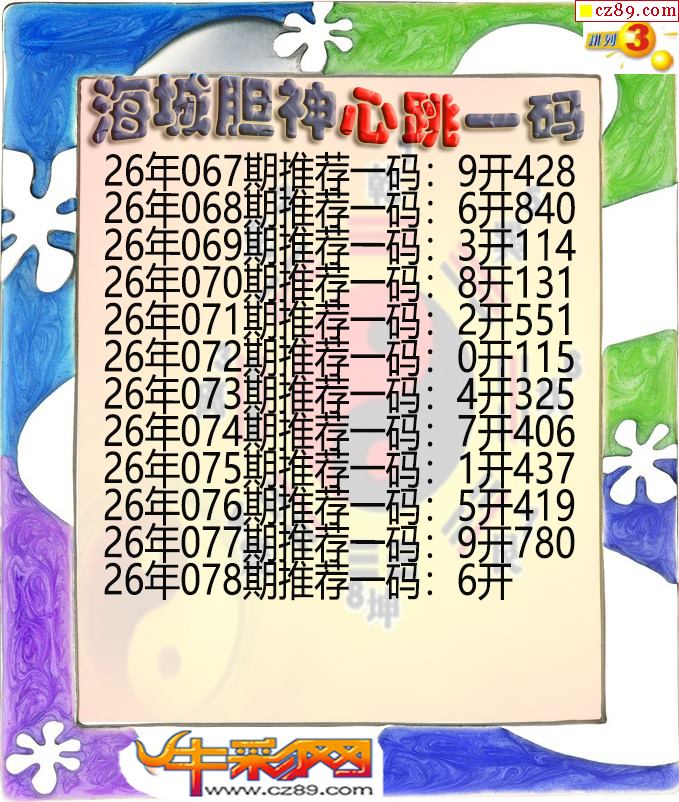 海城胆神心跳一码078期体彩P3图谜