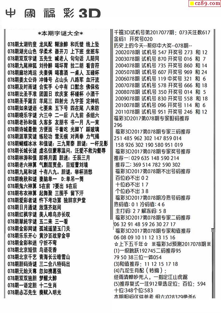杀手+鑫马快报+字迷汇总26年078期3d图谜