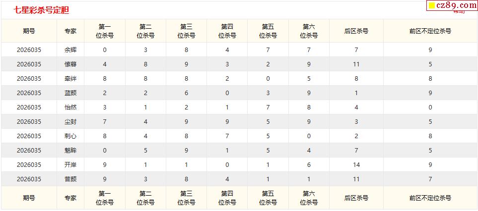 七星彩035期 澳客各路专家直选杀号预测推荐