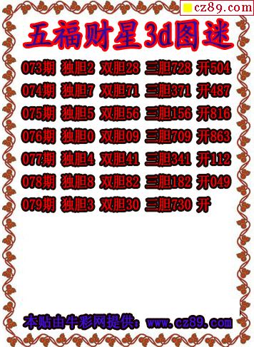2026079期3D图谜汇总(九)