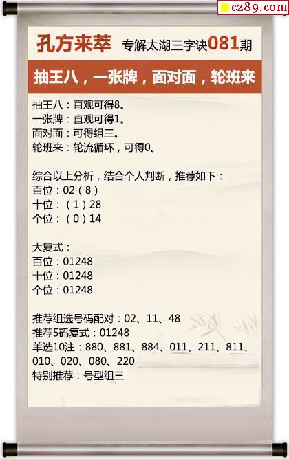 仔仔解081期3D太湖玄机字谜 一张牌