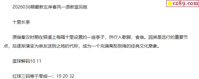 26年福彩双色球036期 左岸春风一语断蓝另版