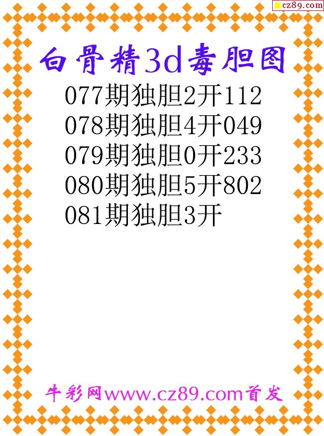 白骨精独胆26081期3d原创图谜