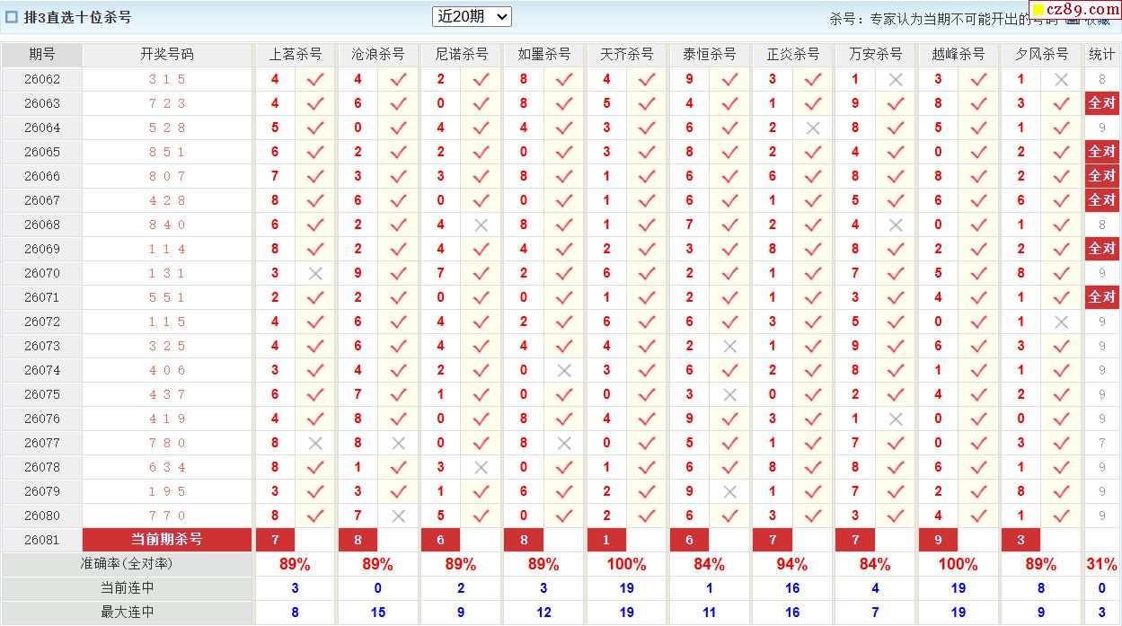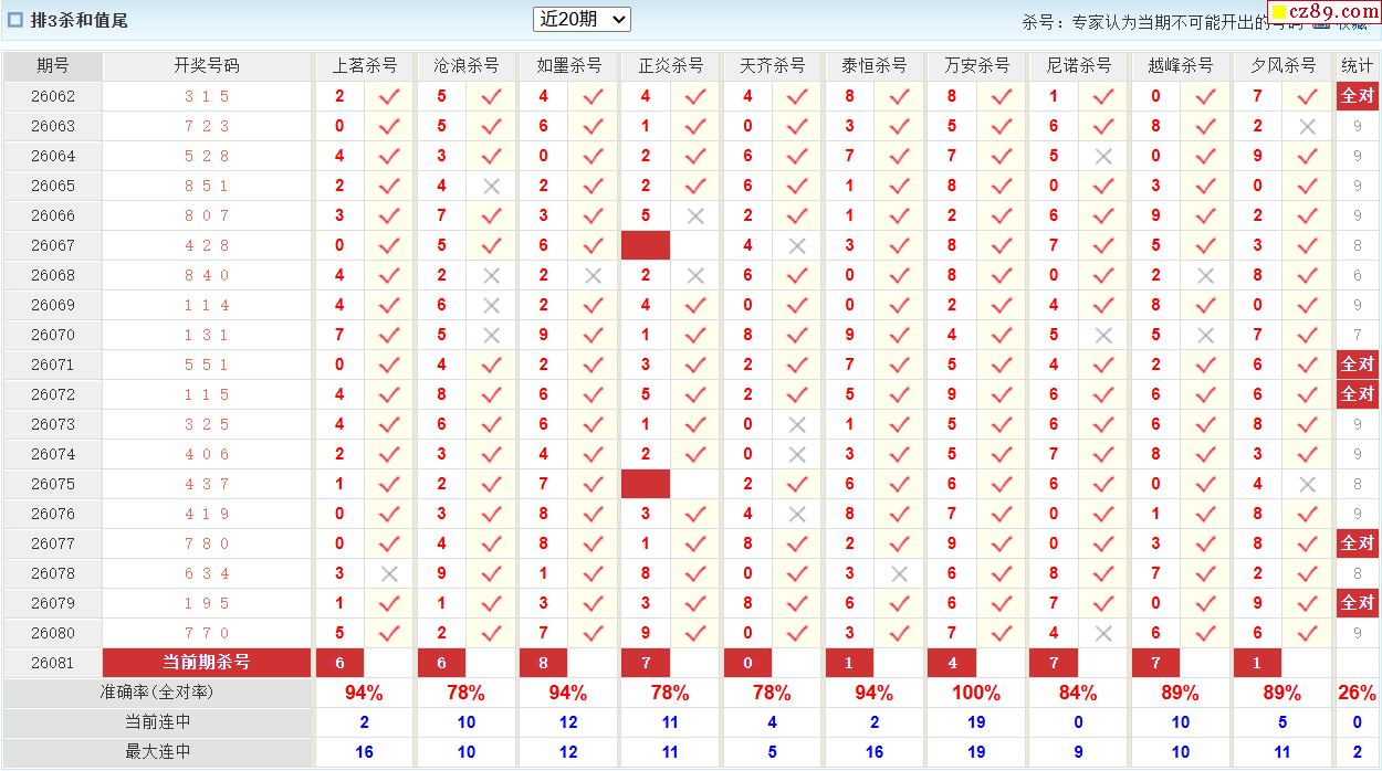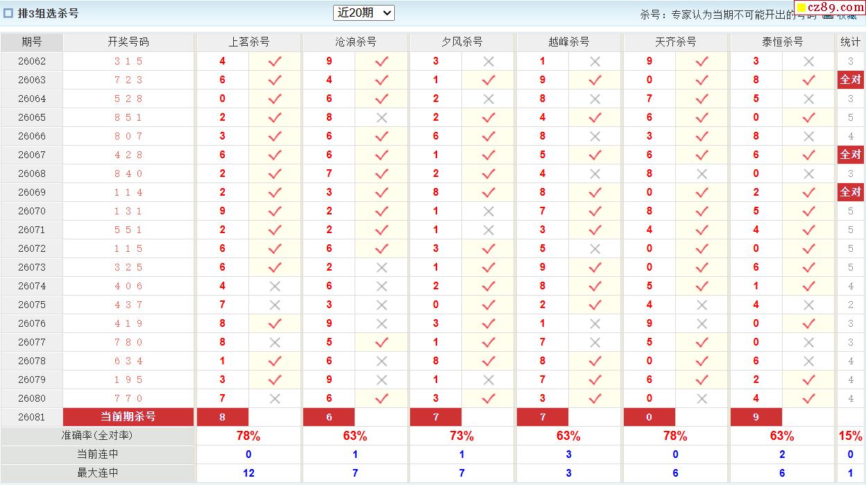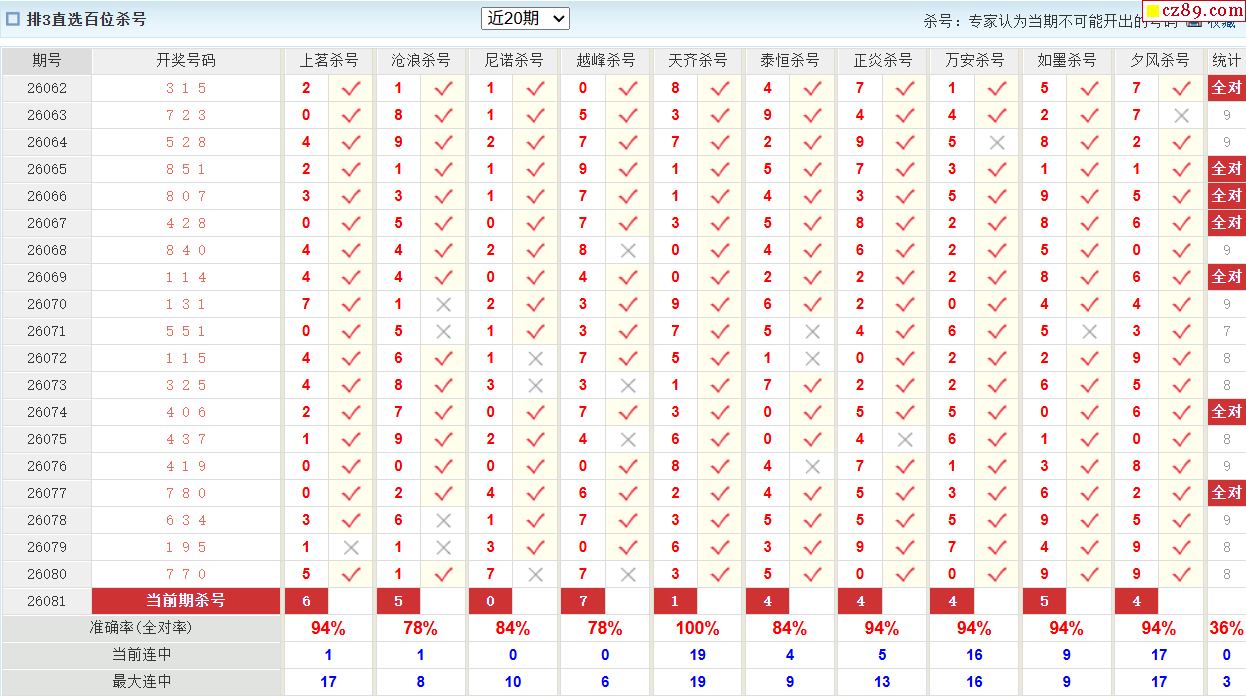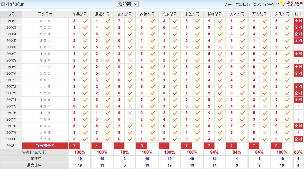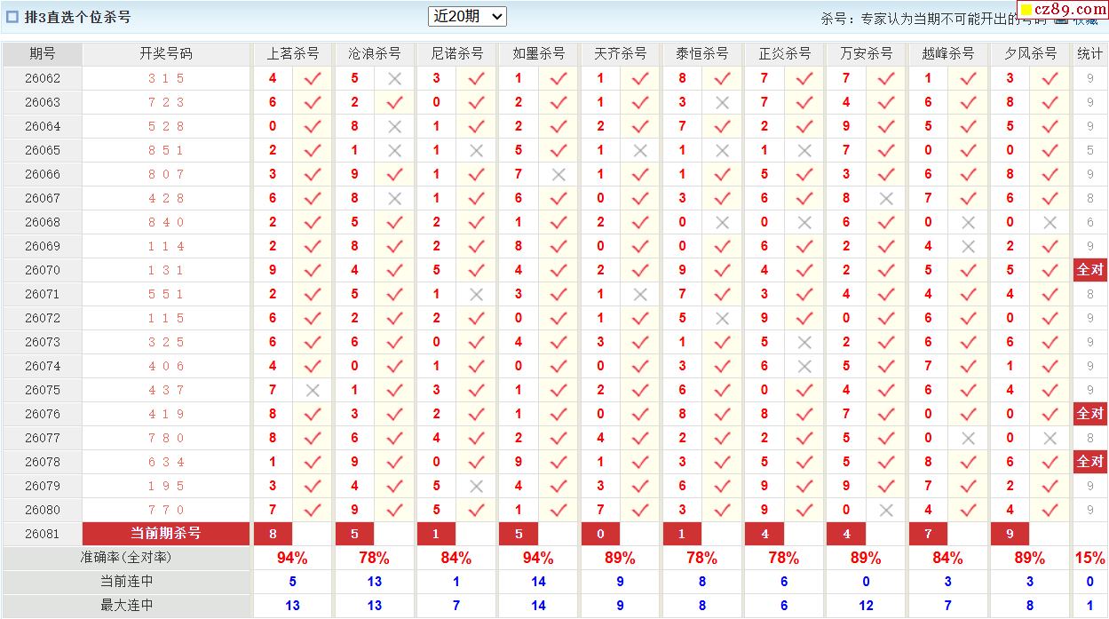 26年081期彩宝贝专家体彩P3杀号定码图表