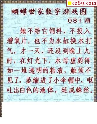 真蝴蝶世家2026081期3d图谜