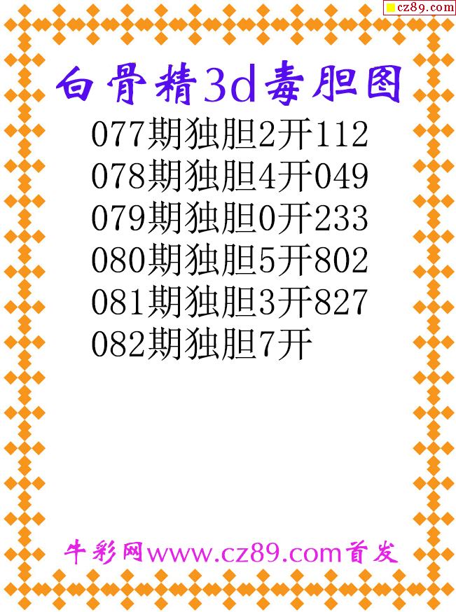 白骨精独胆26082期3d原创图谜
