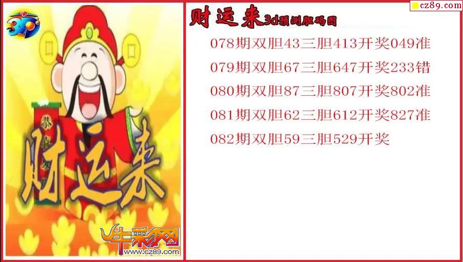 26年082期3d 财运来预测胆码图