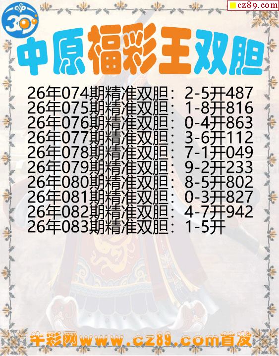 中原福彩王双胆083期3d图谜