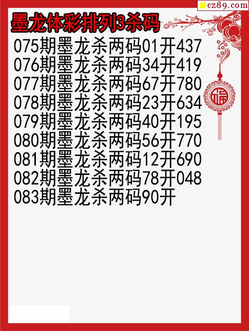 26年083期墨龙体彩排列3杀码图