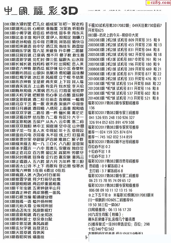杀手+鑫马快报+字迷汇总26年083期3d图谜
