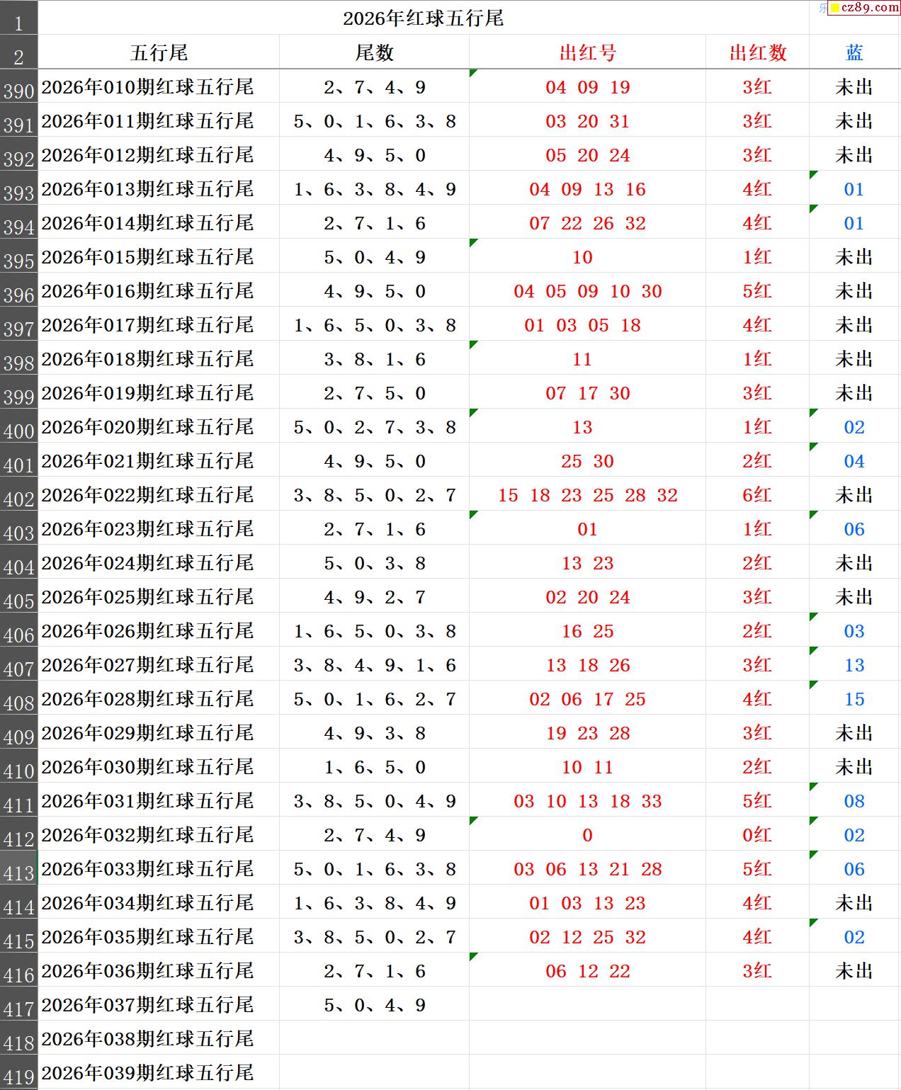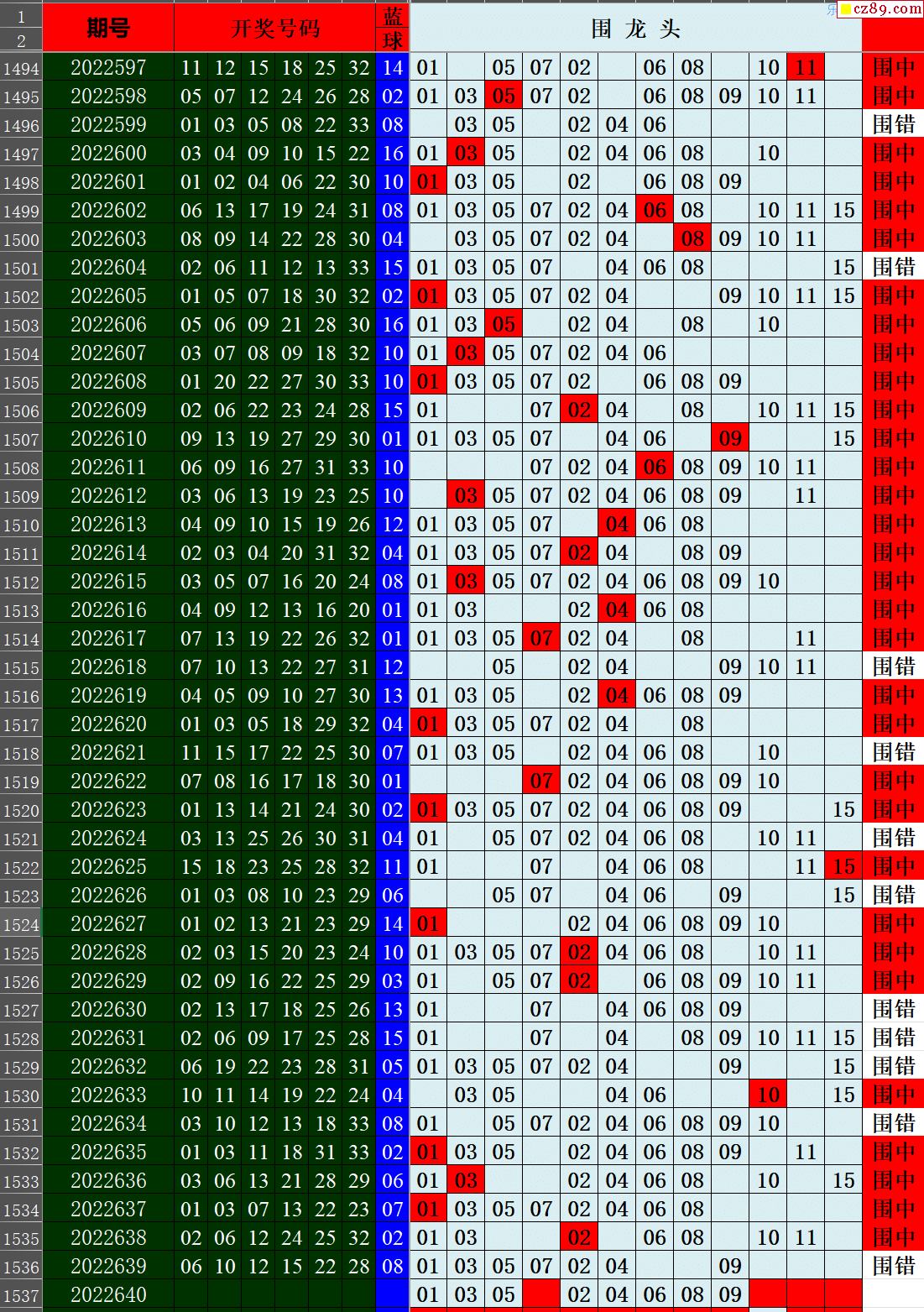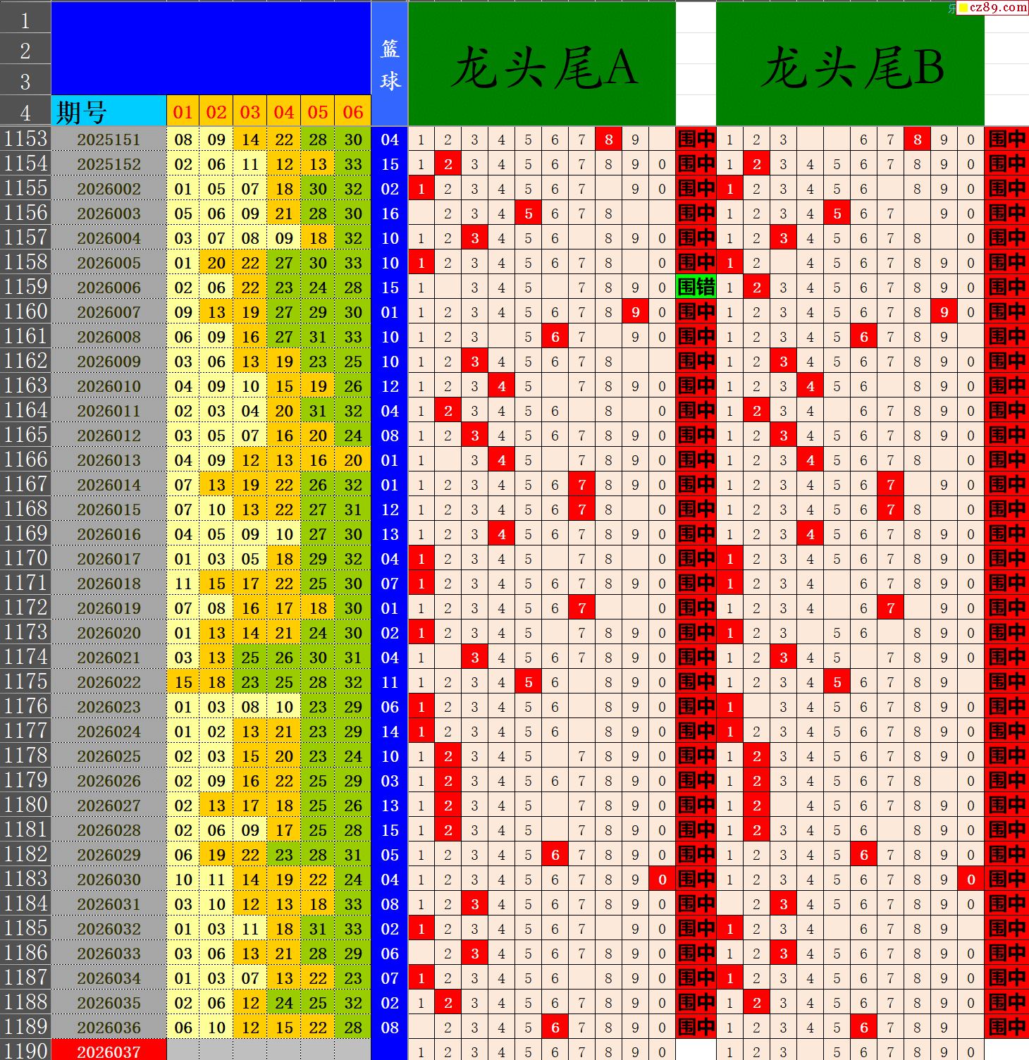 26年037期秋雨龙头凤尾走势图表
