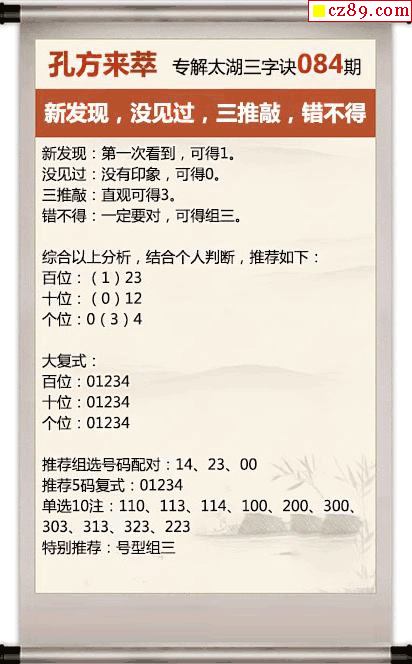 26年084期牛彩版解太湖钓叟三字诀今日汇总