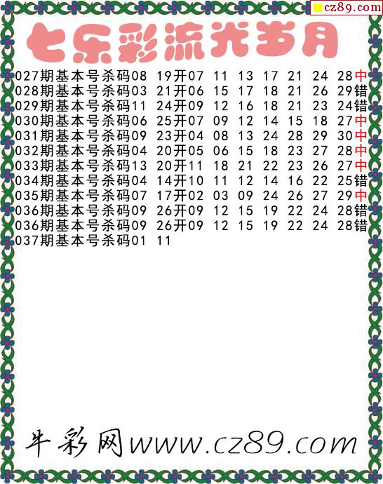 七乐彩2026037期流光岁月杀码图谜 10中6