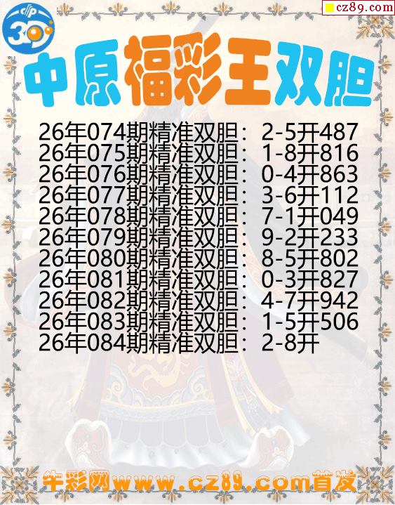 中原福彩王双胆084期3d图谜