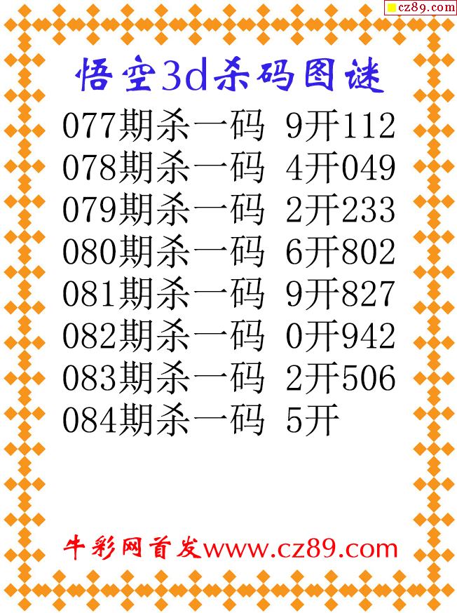 悟空杀码26084期3d原创图谜