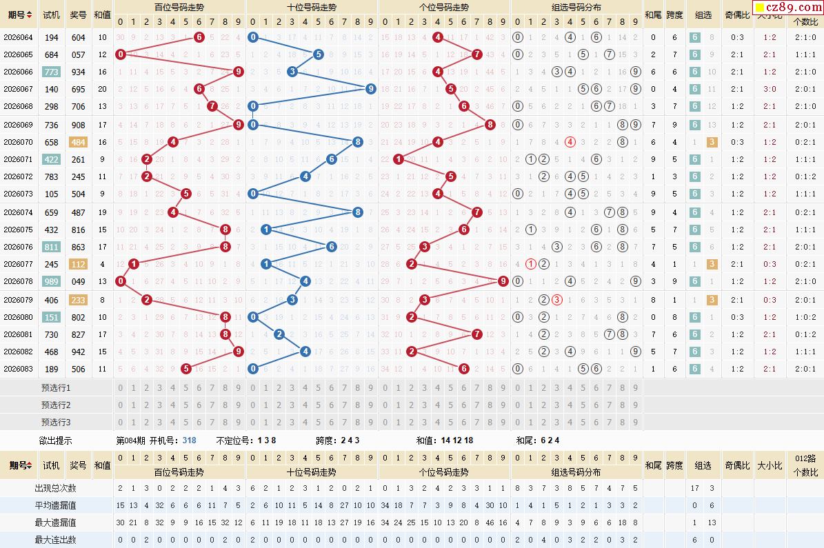 084期福彩3D开奖号码走势图分析