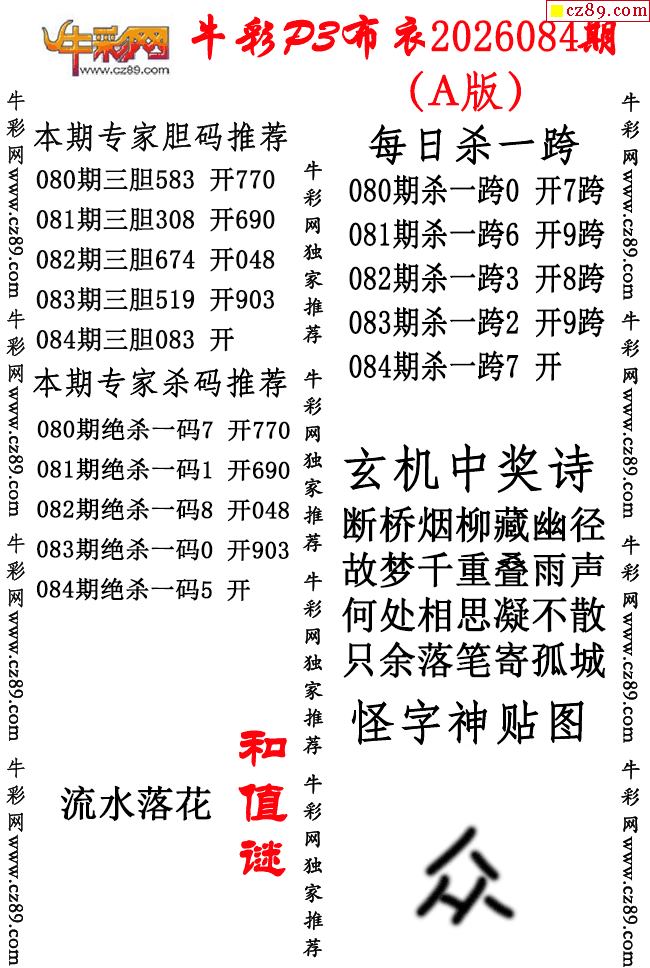 牛彩P3布衣26年084期AB版图谜(精华版)