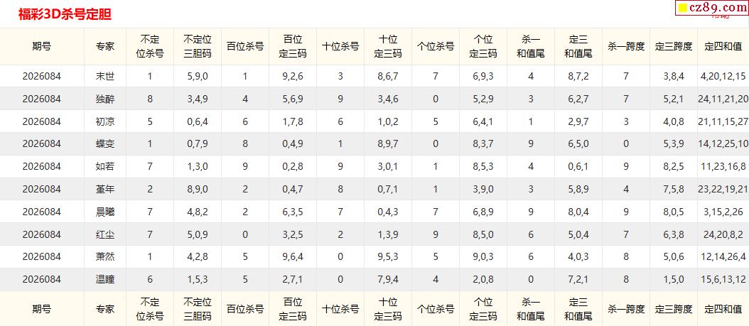 福彩3D2026084期 东汉末年直选定位杀推荐