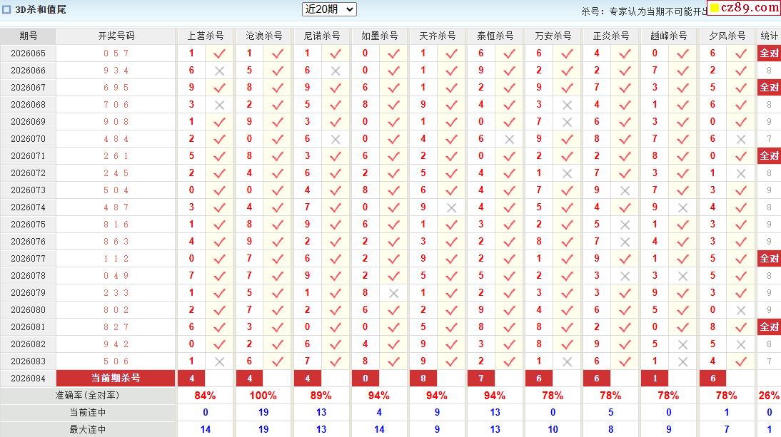 26年084期彩宝贝专家福彩3D杀号定码图表