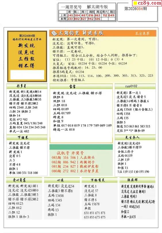 福彩3D2026084期 红尘入世锦鲤吐胆图