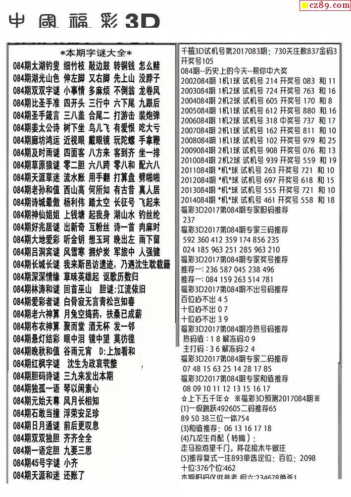 福彩3D2026084期图谜汇总