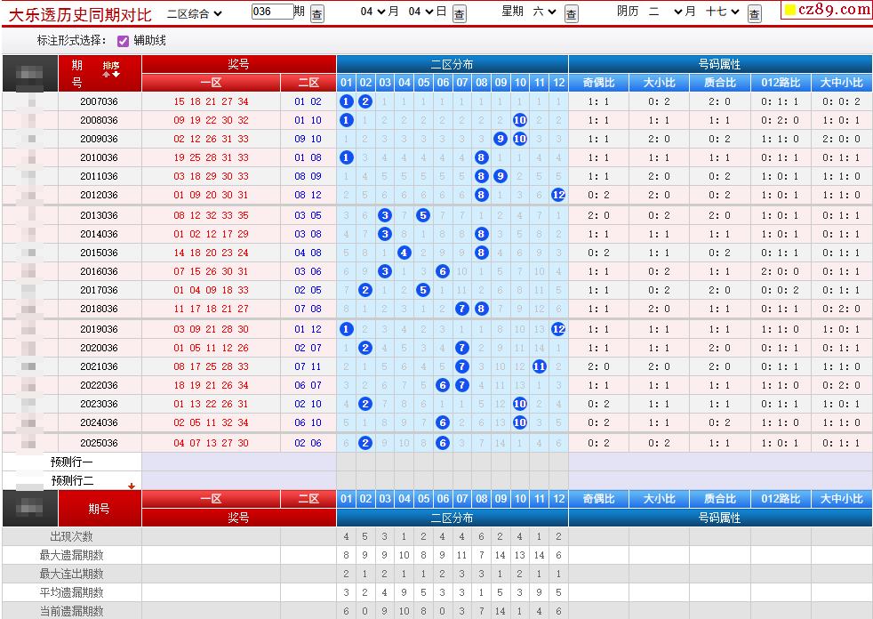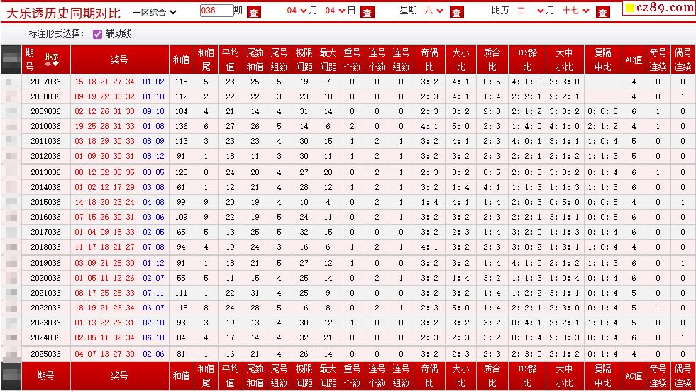 036期大乐透历史同期对比图