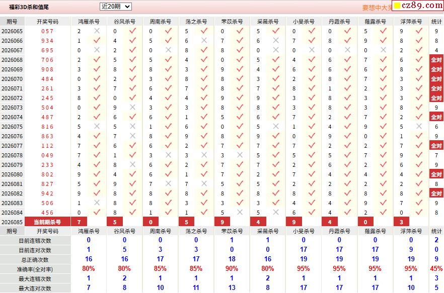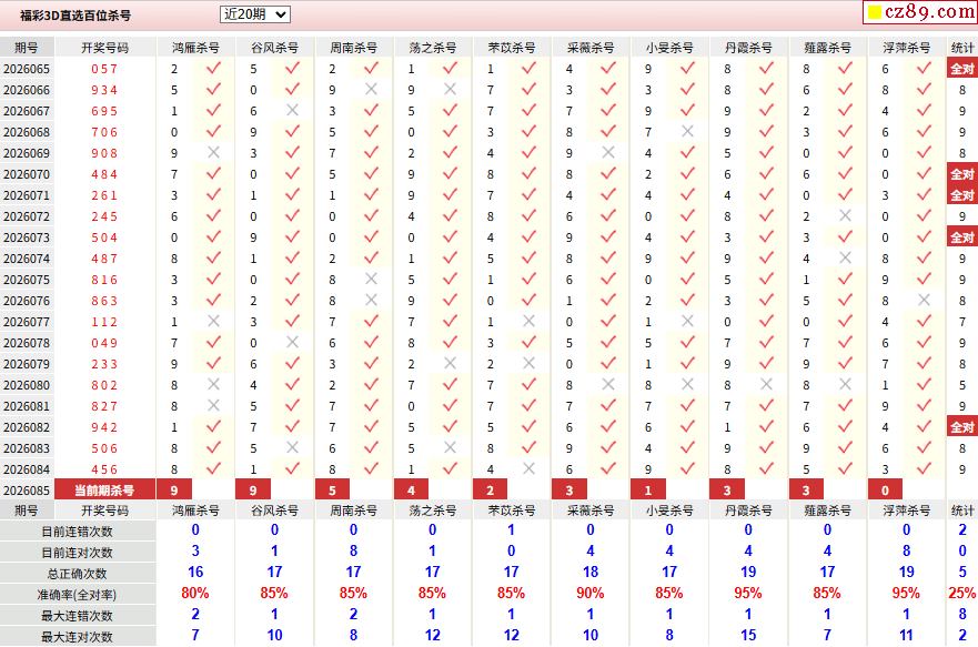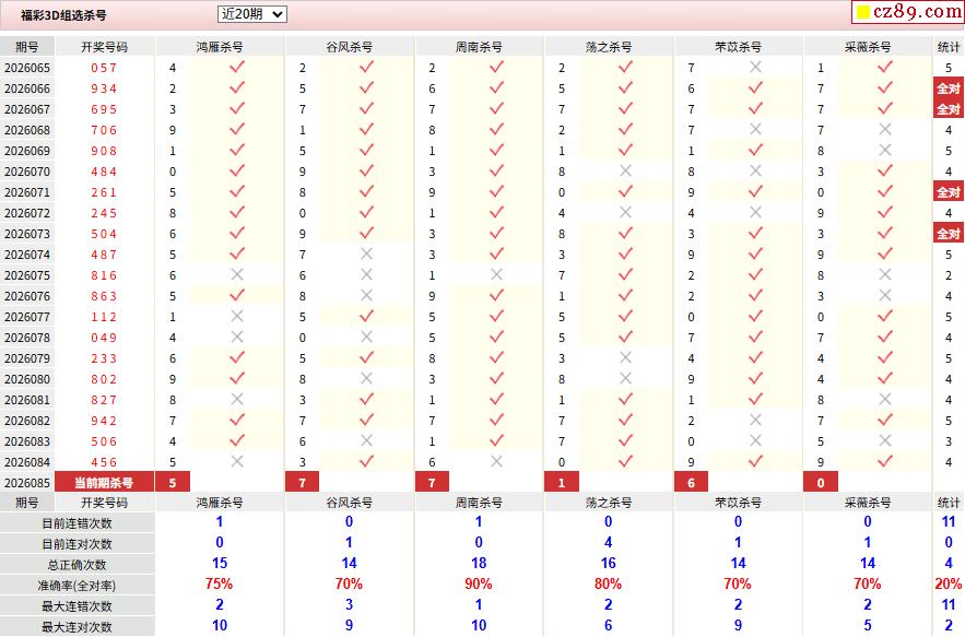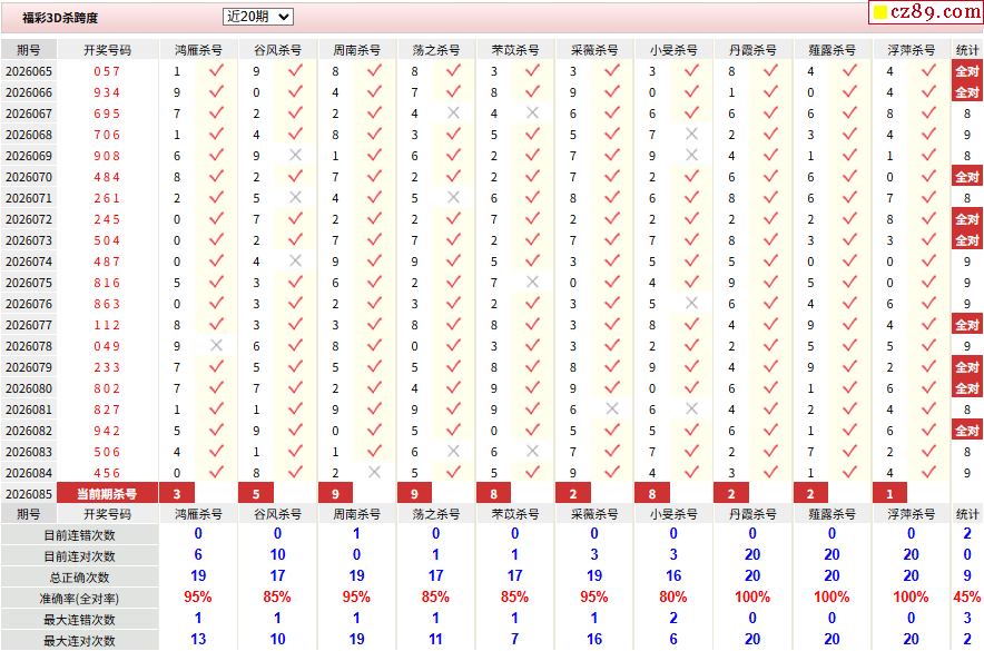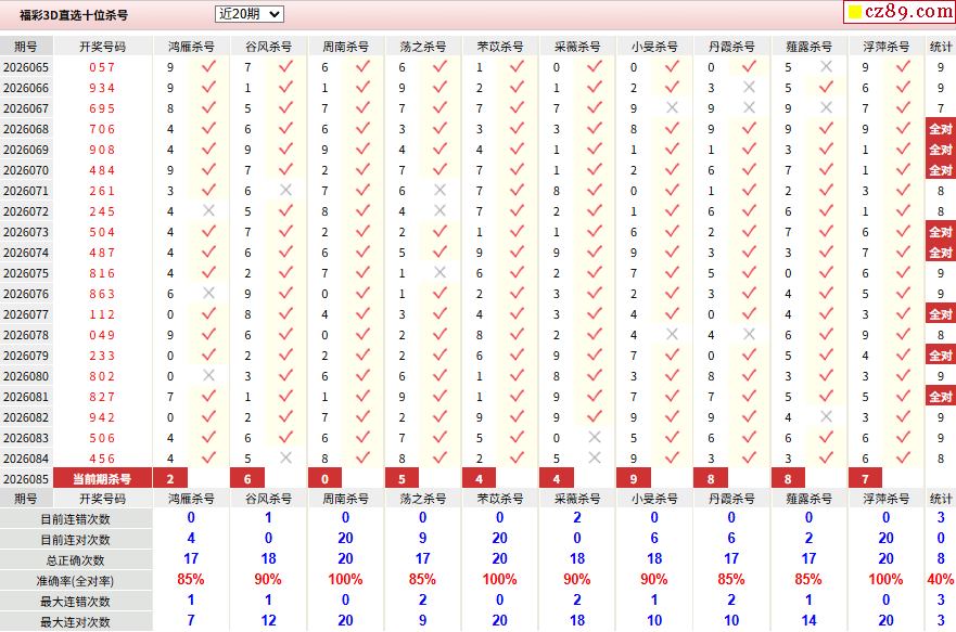 26年085期彩宝贝专家福彩3D杀号定码图表