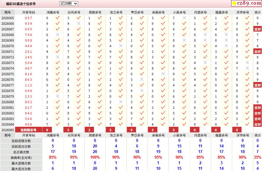 26年福彩3D预测085期 波力斯卡五码复式预测推荐
