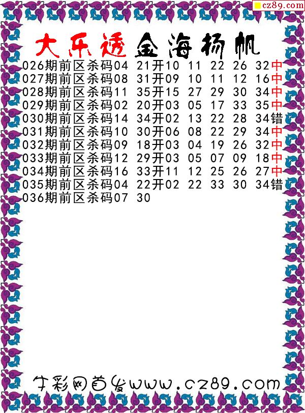 大乐透2026036期金海扬帆前区杀号图谜 10中8