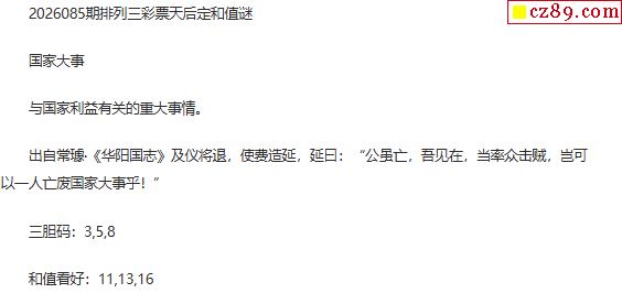 彩票天后p3定和值谜26年085期