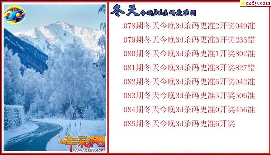 牛彩版3D预测彩报图26年085期打印版