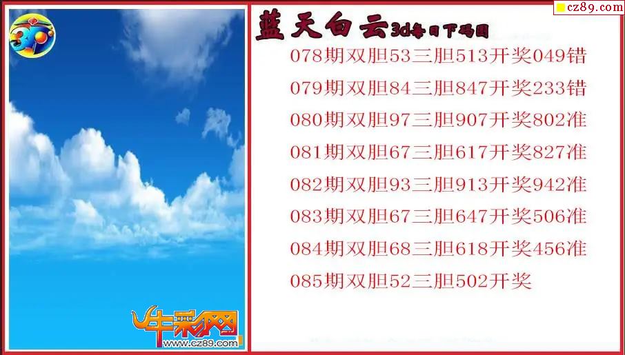 26年085期3d 蓝天白云每日下码图