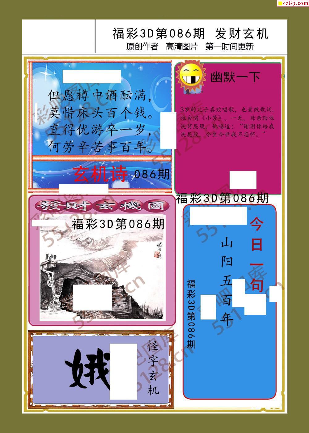 发财玄机26年086期福彩3d画谜