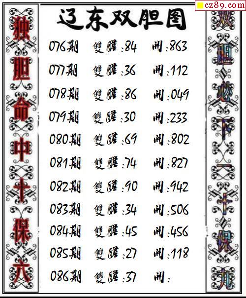辽东双胆2026086期3d图谜