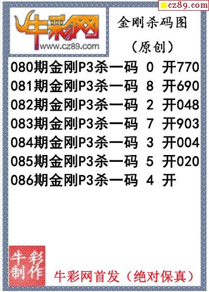 金刚杀码086期体彩P3图迷(原创)