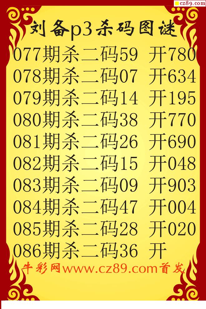26年086期公孙宇P3杀码图