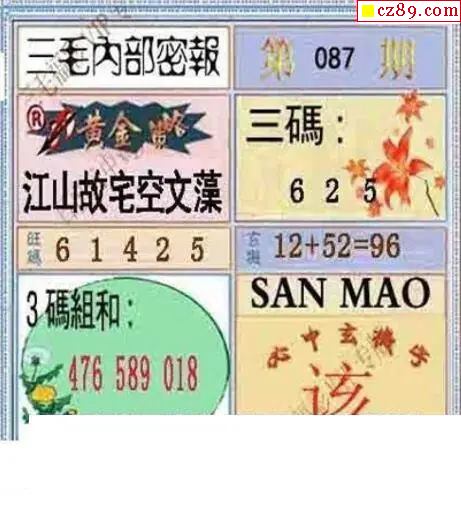 2026087期解太湖3d字图迷汇总报