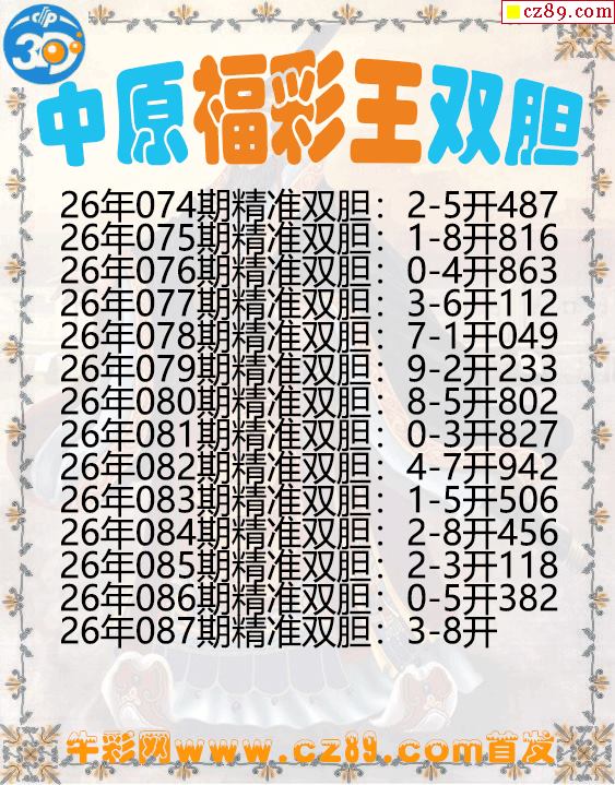 中原福彩王双胆087期3d图谜