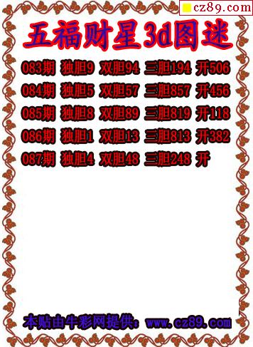 五福财星三胆2026087期3d图谜(原创)
